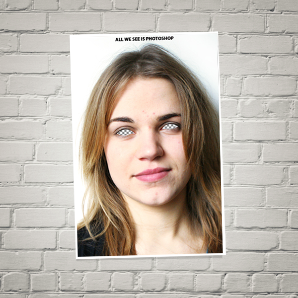 Awareness poster om de digitale fotomanipulatie in de gedrukte media onder de aandacht te brengen.